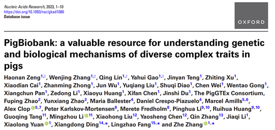 近日,猪禽种业全国重点实验室、国家生猪种业工程技术研究中心、广东省农业动物基因组学与分子育种重点实验室,乐竞在线注册动物科学学院李加琪/张哲教授团队联合国内外多家合作单位,成功构建了猪大规模复杂性状遗传解析数据库PigBiobank (http://pigbiobank.farmgtex.org/),并于2023年11月13日在国际权威期刊Nucleic Acids Research(IF=14.9)发表了题为“PigBiobank: a valuable resource for understanding genetic and biological mechanisms of diverse complex traits in pigs”的研究论文(论文链接:https://doi.org/10.1093/nar/gkad1080)。