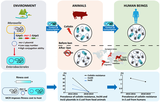 多粘菌素被认为是对抗多重耐药革兰阴性菌所致严重感染的最后一道防线药物。以往认为多粘菌素耐药仅由染色体介导,不存在可水平转移的耐药机制。早在2015年,刘健华教授课题组报道了质粒介导的多粘菌素耐药基因mcr-1。 相关研究表明mcr-1基因的出现有可能导致黏菌素耐药性发展更为快速,因而在国际上引起广泛关注,并促使多个国家调整了黏菌素在食品动物中的使用政策。