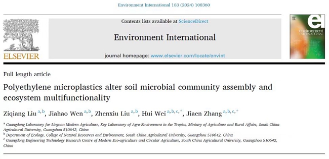 近日,乐竞在线注册资源环境学院、岭南现代农业科学与技术广东省实验室、广东省现代生态农业与循环农业工程技术研究中心、农业农村部华南热带农业环境重点实验室章家恩教授团队的博士生刘自强在环境科学与生态学领域的国际著名期刊Environment International(中科院1区,影响因子11.8)在线发表题为“Polyethylene microplastics alter soil microbial community assembly and ecosystem multifunctionality”的研究论文。