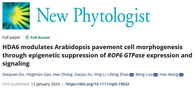 1月12日,乐竞在线注册生命科学学院王浩教授团队联合中国科学院华南植物园在《New Phytologist》 (2023年IF:9.4) 在线发表了题为“HDA6 modulates Arabidopsis pavement cell morphogenesis through epigenetic suppression of ROP6 GTPase expression and signaling”的研究论文。该研究揭示了在拟南芥叶片表皮细胞的发育过程中,组蛋白去乙酰化酶HDA6表观调控小G蛋白ROP6介导的细胞骨架空间分布在叶表皮细胞极性建立与维系中的生物学功能和分子作用机制。