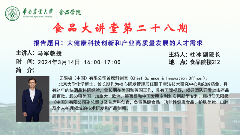 食品大讲堂第二十八期:大健康科技创新和产业高质量发展的人才需求