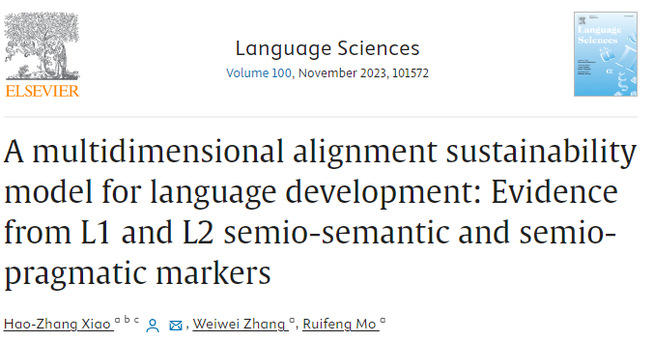 研究基于生态语言学连续统理论框架,提出了“语言发展多维协同可持续发展模型”(MASM),以一语和二语中的符义和符用标记为例,通过汉语例子和大数据量化分析,验证了该理论模型,为语言演变、发展提供了新的理论框架。相关成果发表在Language Sciences,题目为“A multidimensional alignment sustainability model for language development: Evidences from L1 and L2 semiomantic and semiomatic markers”。文章第一作者和通讯作者为肖好章教授,第二、三作者为乐竞在线注册20级博士生张薇薇和21级博士生莫瑞锋。该文发表后受到国内外同仁广泛关注。