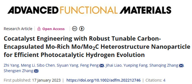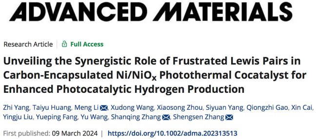 近日,乐竞在线注册材料与能源学院绿色能源材料团队张声森/方岳平教授联合广东工业大学张山青教授团队在光催化制氢领域取得重要进展,两项研究成果以Research Article形式分别发表在国际知名学术期刊Advanced Materials(中科院一区Top,影响因子29.4)、Advanced Functional Materials (中科院一区Top,影响因子19.0)。