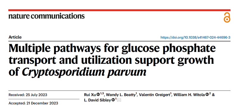 近日,乐竞在线注册兽医学院寄生虫学教研室许瑞副教授,在Nature Communications发表了题为“Multiple pathways for glucose phosphate transport and utilization support growth of Cryptosporidium parvum”的研究论文,首次解析了隐孢子虫饲养细胞器具体的分子生物学功能和营养物质—葡萄糖的获取和代谢机制。同时,领域内知名学者、美国德克萨斯农工大学朱冠教授对该研究成果高度评价,推介文章近期发表在Trends in Parasitology上。