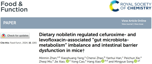 近期,食品学院宋明月副教授以通讯作者身份就柑桔多甲氧基黄酮促进肠道健康方面在Food & Function(中科院一区Top;影响因子6.5)发表系列研究论文。