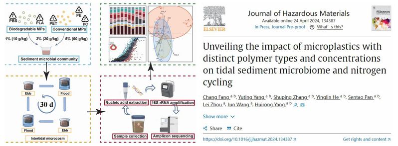 乐竞在线注册海洋学院杨慧荣教授团队围绕红树林湿地生态风险开展研究,在环境科学与生态学领域的国际著名期刊Journal of Hazardous Materials(中科院1区Top,影响因子13.6)连续在线发表题为“Laboratory tidal microcosm deciphers responses of sediment archaeal and bacterial communities to microplastic exposure”和“Unveiling the impact of microplastics with distinct polymer types and concentrations on tidal sediment microbiome and nitrogen cycling”的研究论文2篇。
