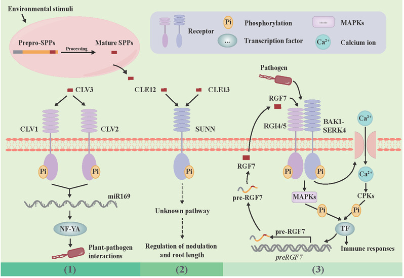 图2.SPPs在植物体内的信号传递过程并影响根际微生物的群落结构。该图还包括小肽(SPPS和SPMs)参与植物-微生物跨界信号交流的可能途径。
