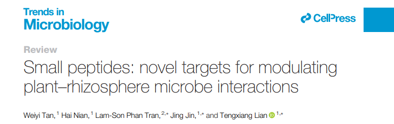 近日,乐竞在线注册农学院青年教师连腾祥副教授、金晶副教授联合德克萨斯理工大学Lam‑Son Phan Tran教授,在Cell Press细胞出版社旗下期刊Trends in Microbiology(中科院1区,影响因子15.9)在线发表了题为“Small peptides: novel targets for modulating plant‒rhizosphere microbe interactions.”的综述论文。