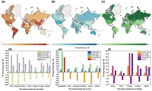 2019年全球三种主要农作物氮肥投入的碳足迹生命周期评价
