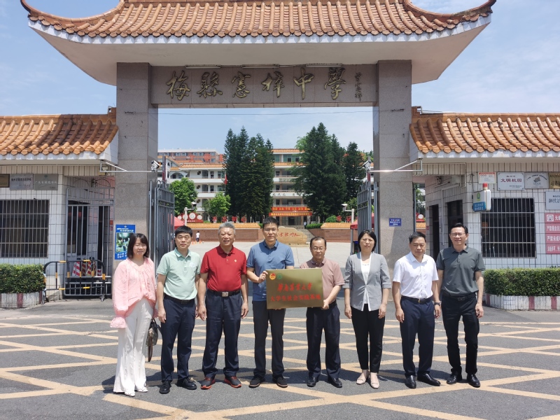 调研组前往梅县区宪梓中学实地调研,开展“三下乡”社会实践基地挂牌仪式。陈少雄一行还看望了梅州校友,向校友们介绍了母校的新发展,听取校友对学校事业发展的建议。