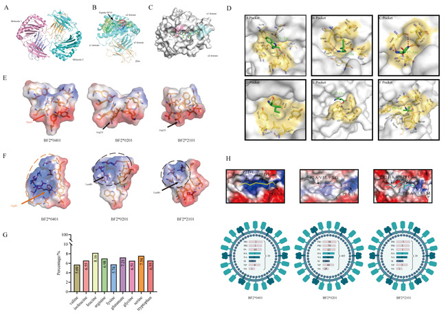 尽管家禽养殖和生产中长期使用疫苗,但H9N2亚型AIV (Avian influenza virus,AIV)仍是我国主要流行的低致病性禽流感病毒,不仅给养禽业造成直接经济损失,还为近年来感染人的H7N9、H10N8和H5N6等禽流感毒株提供内部基因。因此,控制H9N2亚型禽流感的广泛流行对于控制我国禽流感多亚型毒株的出现和传播具有重要意义。该课题组前期研究发现H9N2 AIV灭活疫苗不能刺激鸡CD8+T细胞效应应答,是其保护效果不好的重要原因(dai et al., 2021)。因此,鉴定刺激CD8+T细胞应答的抗原表位是未来研发有效疫苗的基础。CD8+T细胞表位主要是由鸡MHC I类分子提呈,而鸡MHC I类分子提呈表位的数量和刺激T细胞应答活化的强度与疾病的抗性有重要联系。而鸡中常见的抗性MHC B2分子递呈AIV的表位尚未得到系统研究和鉴定。在该研究中,课题组不仅首次鉴定了MHC B2 class I类分子的肽结合基序,而且联合结构生物学实验解析了B2单倍型鸡对H9N2 AIV具有抗性的原因,并通过功能性实验鉴定了4条鸡CD8+T细胞保守抗原表位。