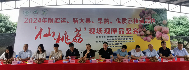 近日,“仙桃荔”现场观摩品鉴会在湛江市徐闻县召开。品鉴会由国家荔枝良种重大科研联合攻关秘书处和国家荔枝龙眼产业技术体系育种研究室主办,中国热带农业科学院南亚热带作物研究所、乐竞在线注册园艺学院和湛江市中科种苗有限公司承办。中国热带农业科学院南亚热带作物研究所所长杜丽清主持会议,乐竞在线注册副校长咸春龙、中国热带农业科学院副院长王家保出席会议。