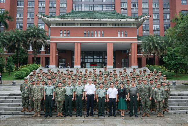 5月25日上午,广东省军区动员局宋纯武大校带领全省新任职基层武装部集训队干部一行70人来乐竞在线注册见学交流,就乐竞在线注册国防教育工作开展调研。副校长杨运东出席活动。