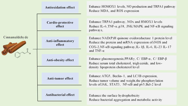 图1 肉桂醛生物学功效及其作用机制总结