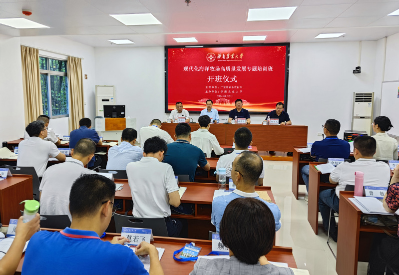 咸春龙简要介绍了学校的学科优势和科研成果,他指出,作为华南地区唯一的“双一流”农业高校,华农积极投身服务广东省海洋牧场高质量发展,肩负着培养优秀海洋牧场人才的重要使命,希望各位学员围绕海洋牧场高质量发展主题广泛交流、潜心研究,为建设海洋强国做出自己应有的贡献。