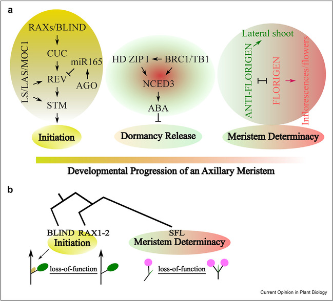图2:叶腋分生组织发育调控的分子基础和演化