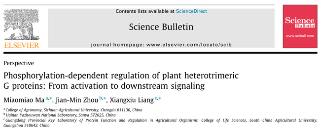 近日,乐竞在线注册梁祥修教授、四川农业大学马苗苗副教授、崖州湾国家实验室周俭民研究员共同在Science Bulletin上撰写题为“Phosphorylation-dependent Regulation of Plant Heterotrimeric G Proteins: From Activation to Downstream Signaling”的观点文章,综述了磷酸化修饰在G蛋白从激活到下游信号转导过程中的调控功能和机制。基于近年来植物G蛋白研究领域的进展,总结了植物G蛋白独特的激活和信号转导模式。