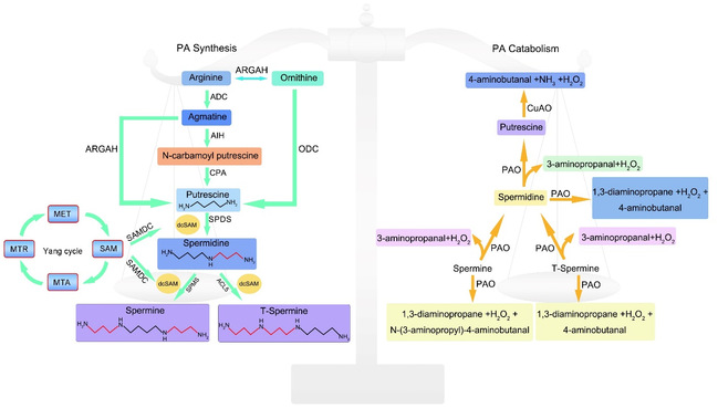 多胺稳态维持依赖于合成与代谢途径的平衡