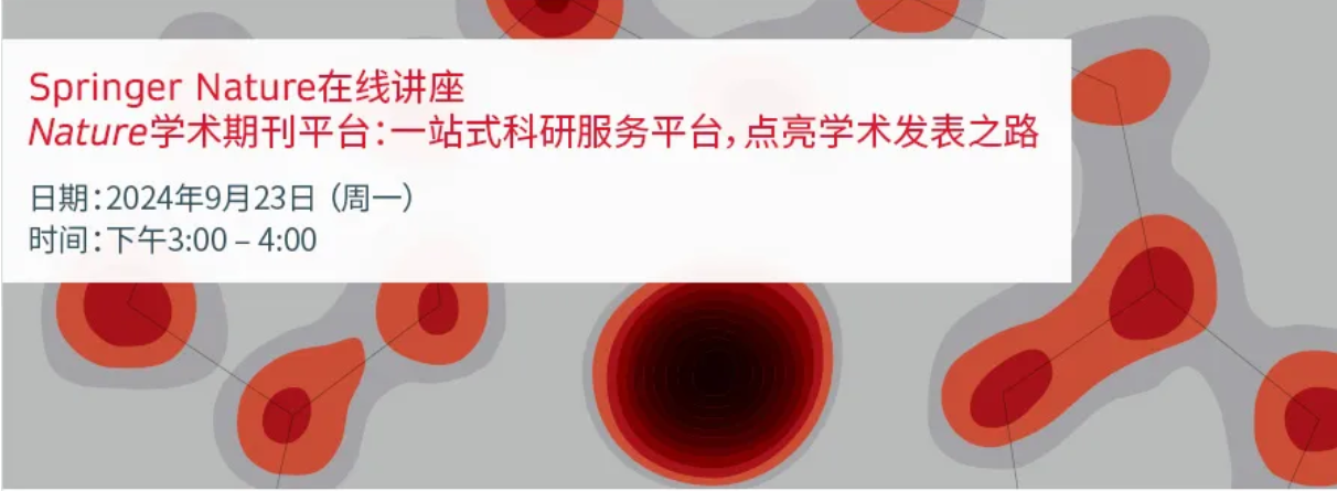 Springer将提供丰富多样的学术资源。无论您是刚刚入学的新生,想要了解如何使用学术资源平台,增强信息检索能力,或是科研人员在寻找最新的研究进展,深入某个特定主题,这里都能满足您的需求。关注Springer Nature科研服务号订阅话题“2024秋季开学季”,随时了解各类学术资源、科研资讯以及在线培训讲座等信息。