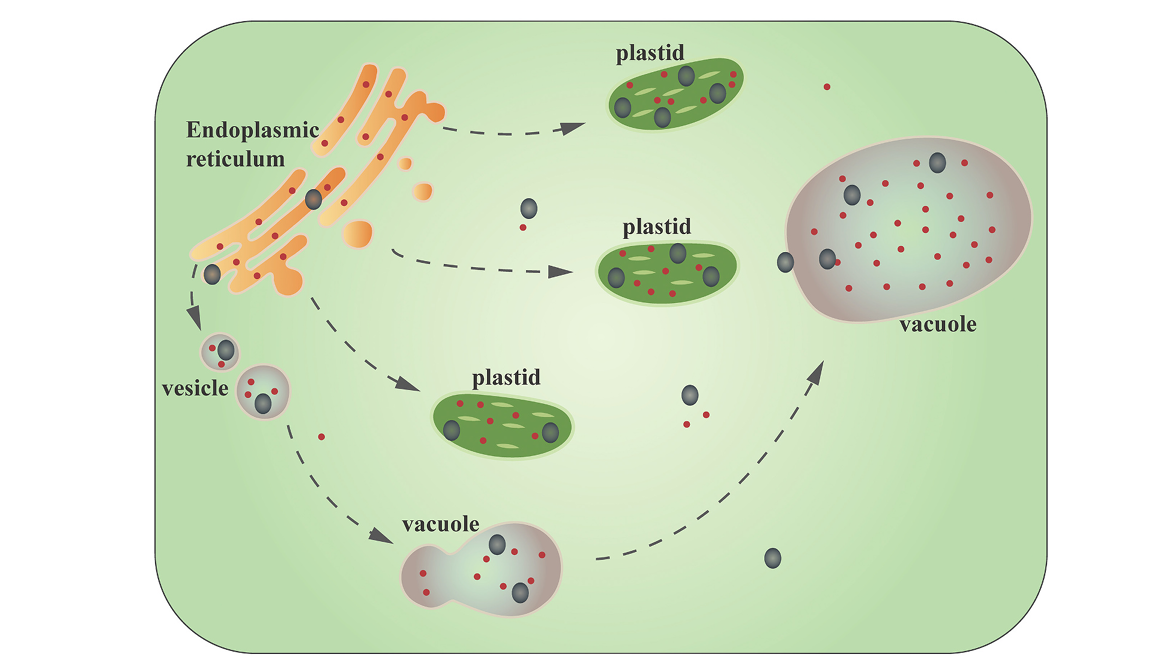 团队基于转录组学数据分析,同时结合体外和体内功能验证确定CgLS显著促进化橘红果实分泌囊细胞内D -柠檬烯的合成。细胞学、免疫组织化学和免疫细胞化学定位研究表明,CgLS主要在分泌腔细胞的内质网合成,随后转运到质体中积累,在质体中合成了柠檬烯并转运至液泡储存。研究结果为理解柑橘类植物精油的生物合成提供了重要的细胞学和分子依据。通过对不同发育阶段果实的分析,揭示了CgLS基因的表达水平与化橘红果实发育阶段密切相关,为精油产量调控提供了潜在的靶标。