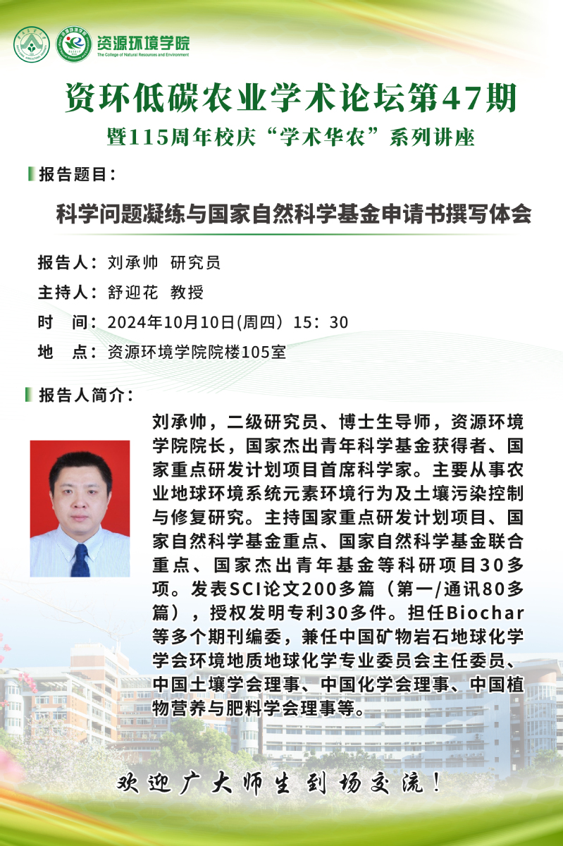 115周年校庆“学术华农”系列活动之0301:资环低碳农业学术论坛第47期