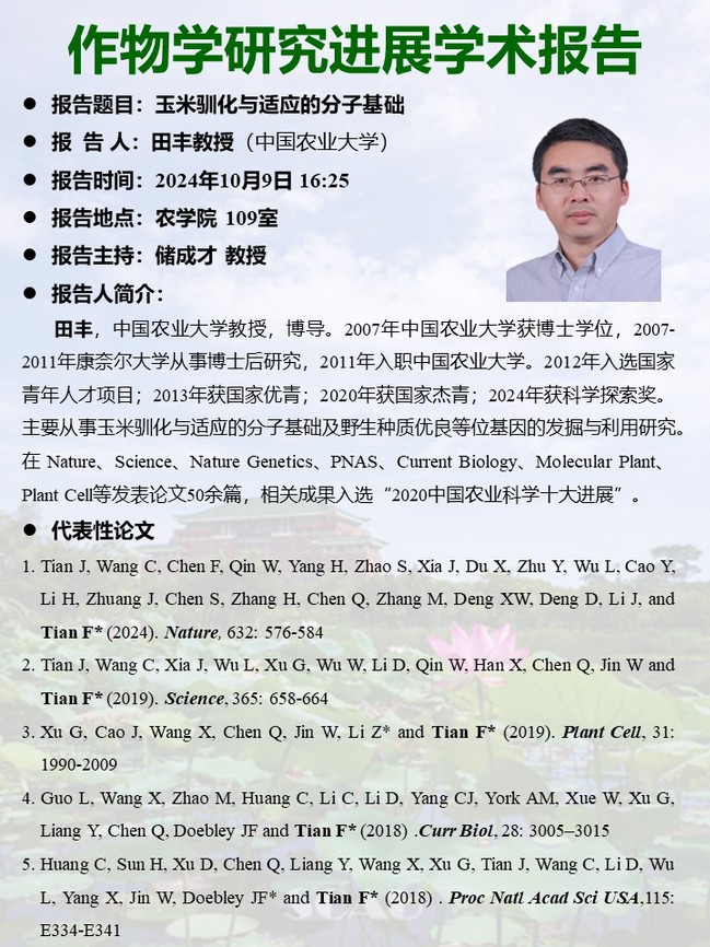 115周年校庆“学术华农”系列活动之0314作物学研究进展学术报告--玉米驯化与适应的分子基础