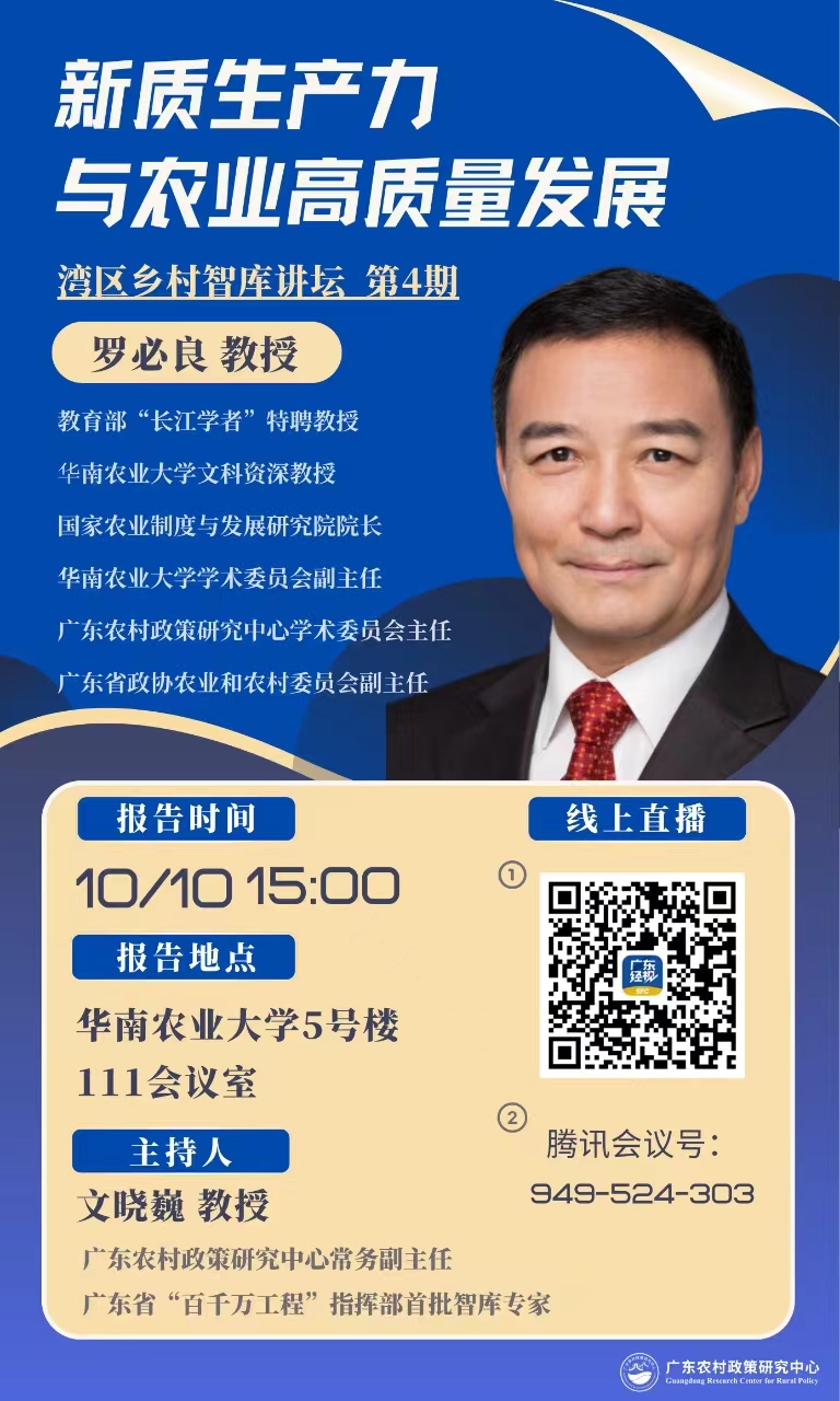 115周年校庆“学术华农”系列活动之0317 湾区乡村智库讲坛(第4期):新质生产力与农业高质量发展