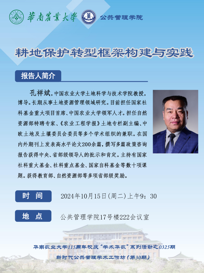 115周年校庆“学术华农”系列活动之0325:耕地保护转型框架构建与实践
