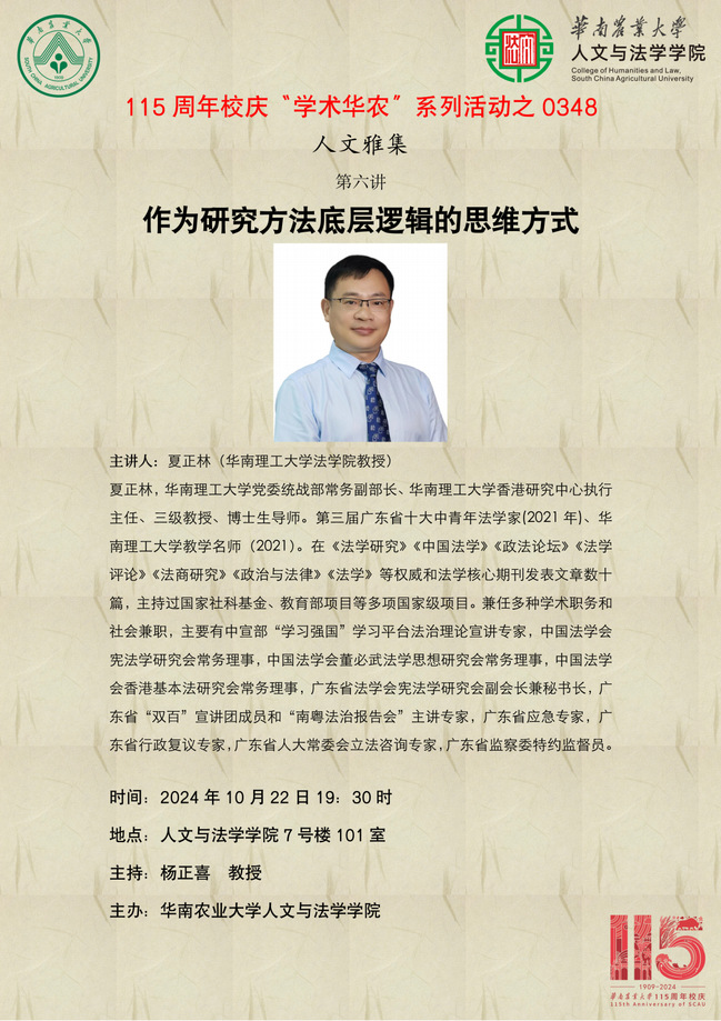 115周年校庆“学术华农”系列活动之0348:【人文雅集 】作为研究方法底层逻辑的思维方式