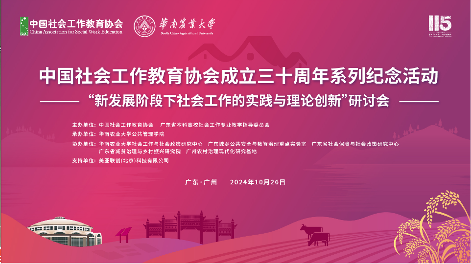 115周年校庆“学术华农”系列活动之0323:中国社会工作教育协会成立三十周年系列纪念活动之“新发展阶段下社会工作的实践与理论创新”研讨会