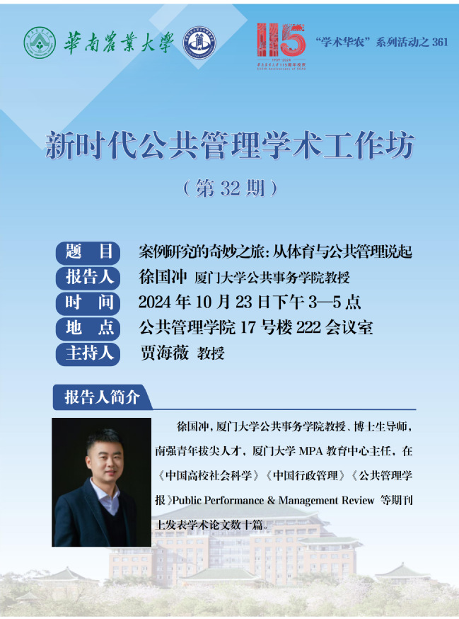 115周年校庆“学术华农”系列活动之0361:新时代公共管理学术工作坊:案例研究的奇妙之旅:从体育与公共管理说起