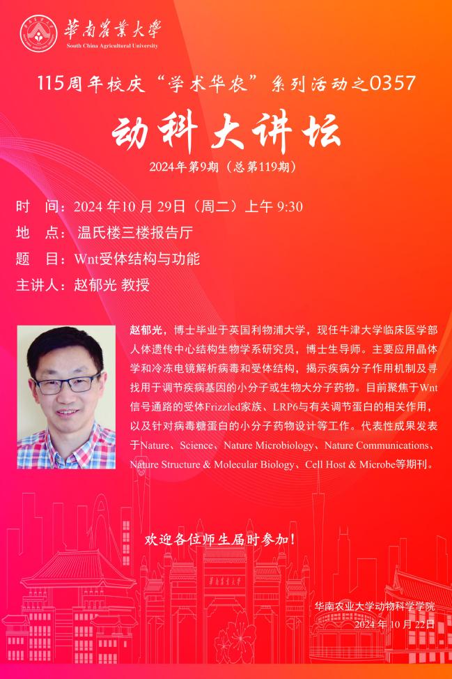 115周年校庆“学术华农”系列活动之0357:动科大讲坛第9期:Wnt受体结构与功能