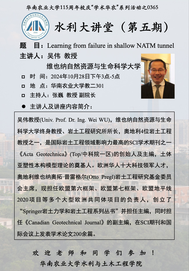 115周年校庆“学术华农”系列活动之0365:Learning from failure in shallow NATM tunnel