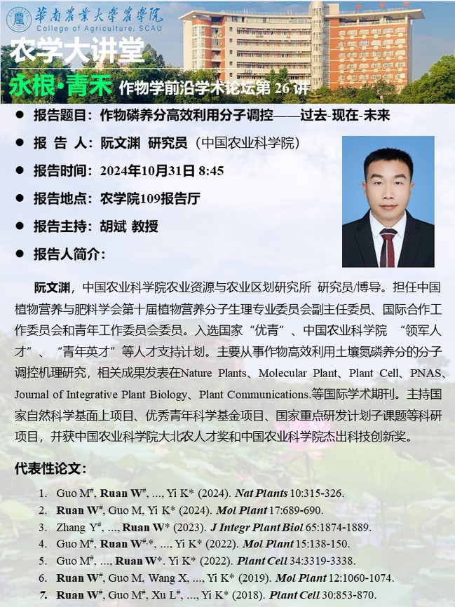 115周年校庆“学术华农”系列活动之0372农学大讲堂--“永根•青禾”作物学前沿学术论坛第26讲