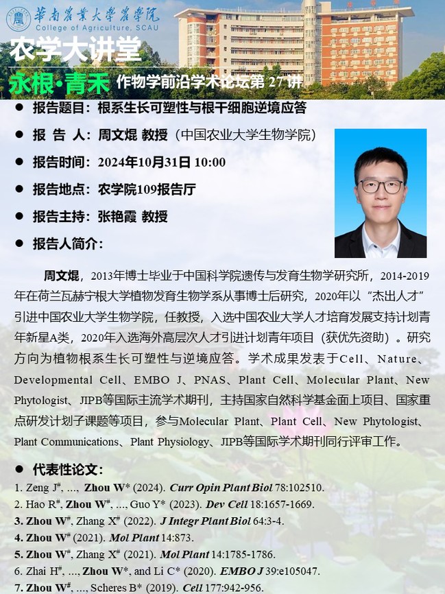 115周年校庆“学术华农”系列活动之0371农学大讲堂--“永根•青禾”作物学前沿学术论坛第27讲