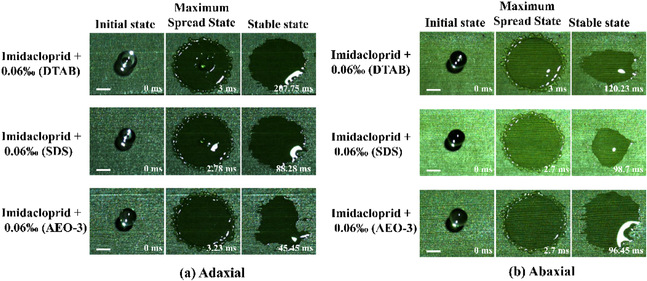 研究还发现了表面活性剂,可以有效调节农药的物理化学性质,增强药液在叶片表面的润湿性和附着性。能量耗散和润湿面积的分析进一步表明,在液滴铺展过程中,成熟叶的能量耗散率较高,铺展面积较大,更有利于农药的保持和润湿效果。这些研究不仅建立了不同生长期叶片表面特性与农药喷洒效果之间的联系,而且提高了农药的利用效率,为香蕉种植的病虫害防治和环境保护提供了科学依据。