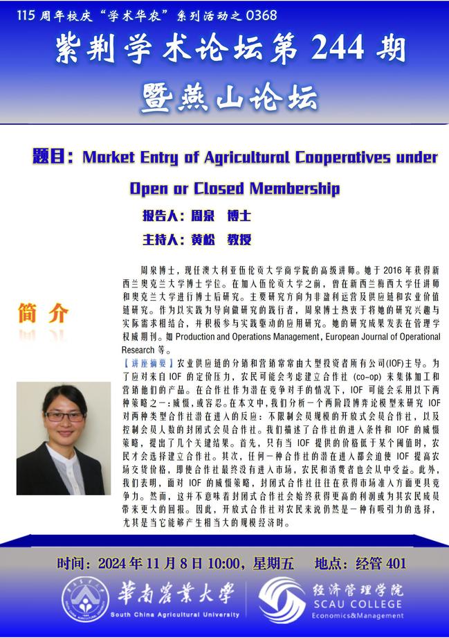 115周年校庆“学术华农”系列活动之0368:紫荆学术论坛第244期暨燕山论坛