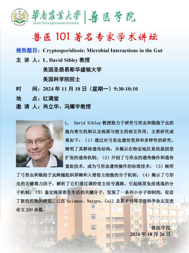 115周年校庆“学术华农”系列活动之0411:Cryptosporidiosis:Microbial Interactions in the Gut