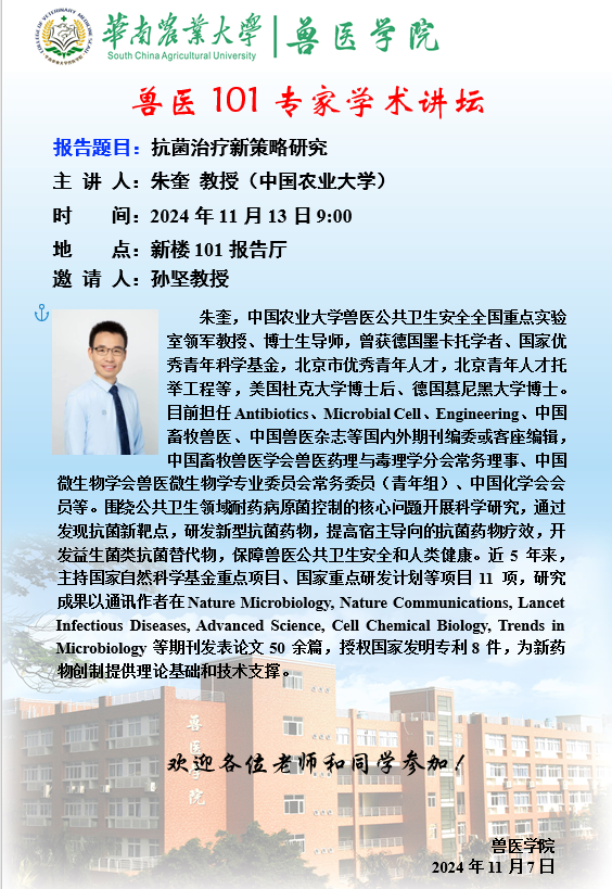 115周年校庆“学术华农”系列活动之0413:抗菌治疗新策略研究