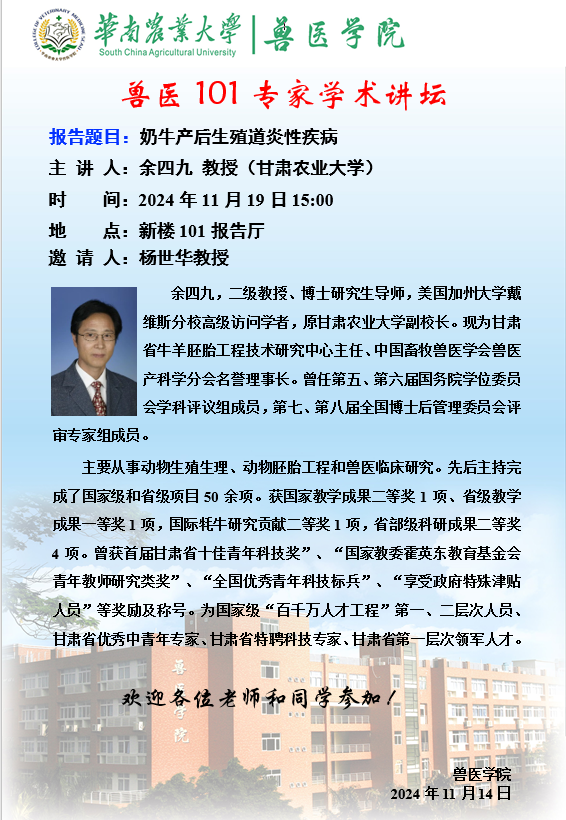 115周年校庆“学术华农”系列活动之0431:奶牛产后生殖道炎性疾病