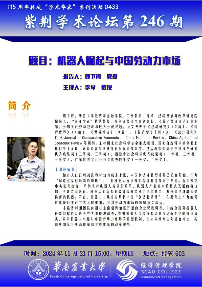 115周年校庆“学术华农”系列活动之0433:紫荆学术论坛第246期