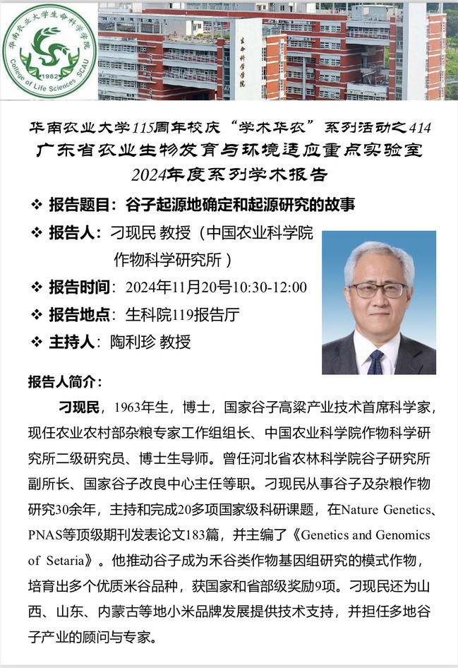 115周年校庆“学术华农”系列活动之0414:谷子起源地确定和起源研究的故事
