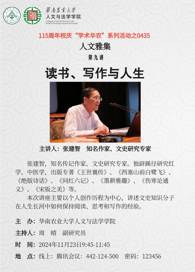 115周年校庆“学术华农”系列活动之0435:【人文雅集 】读书、写作与人生