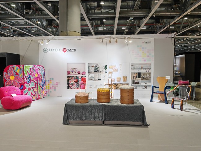 本次博览会汇聚近百位艺术家,学校艺术学院金憓教授团队展厅以非遗香云纱创新设计为核心,将传统工艺与现代时尚结合,使其焕发新生。林汉聪老师指导的学生作品《多巴胺小屋》《壹笼点心》《幻新》和《宇宙的回响——飞天梦》也在博览会中展出,体现了学生的独到艺术观点和高质审美素养。