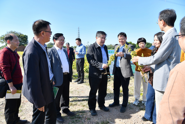 以此次岭南复耕地种植大豆新品种新技术集中展示为契机,校长薛红卫,南海区区长王勇和各科研院所、相关政府部门负责人、专家代表及企业代表齐聚一堂,就如何开展高水平农业校地合作进行交流讨论。