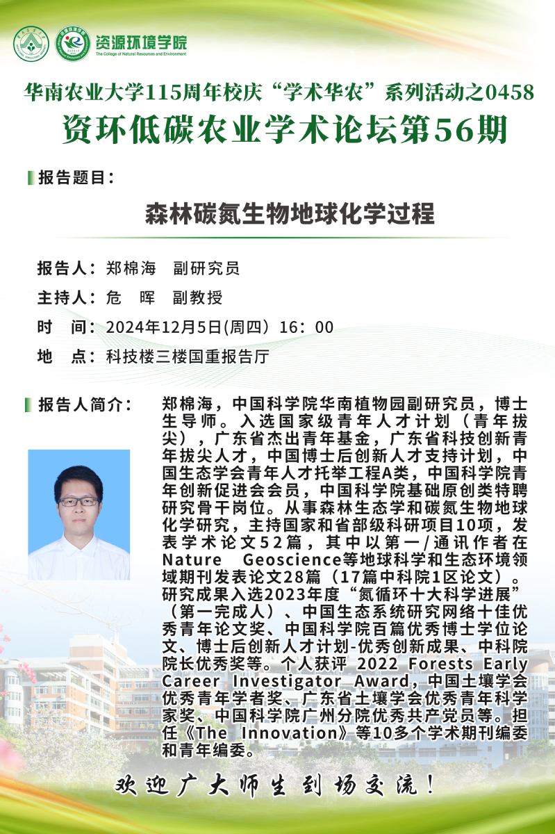 115周年校庆“学术华农”系列活动之0458:资环低碳农业学术论坛第56期