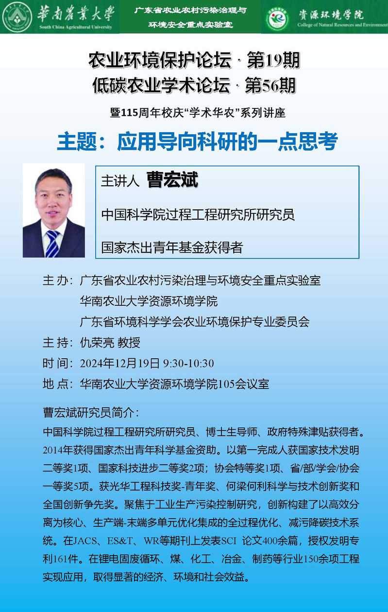 115周年校庆“学术华农”系列活动:农业环境保护论坛第19期暨低碳农业学术论坛第56期