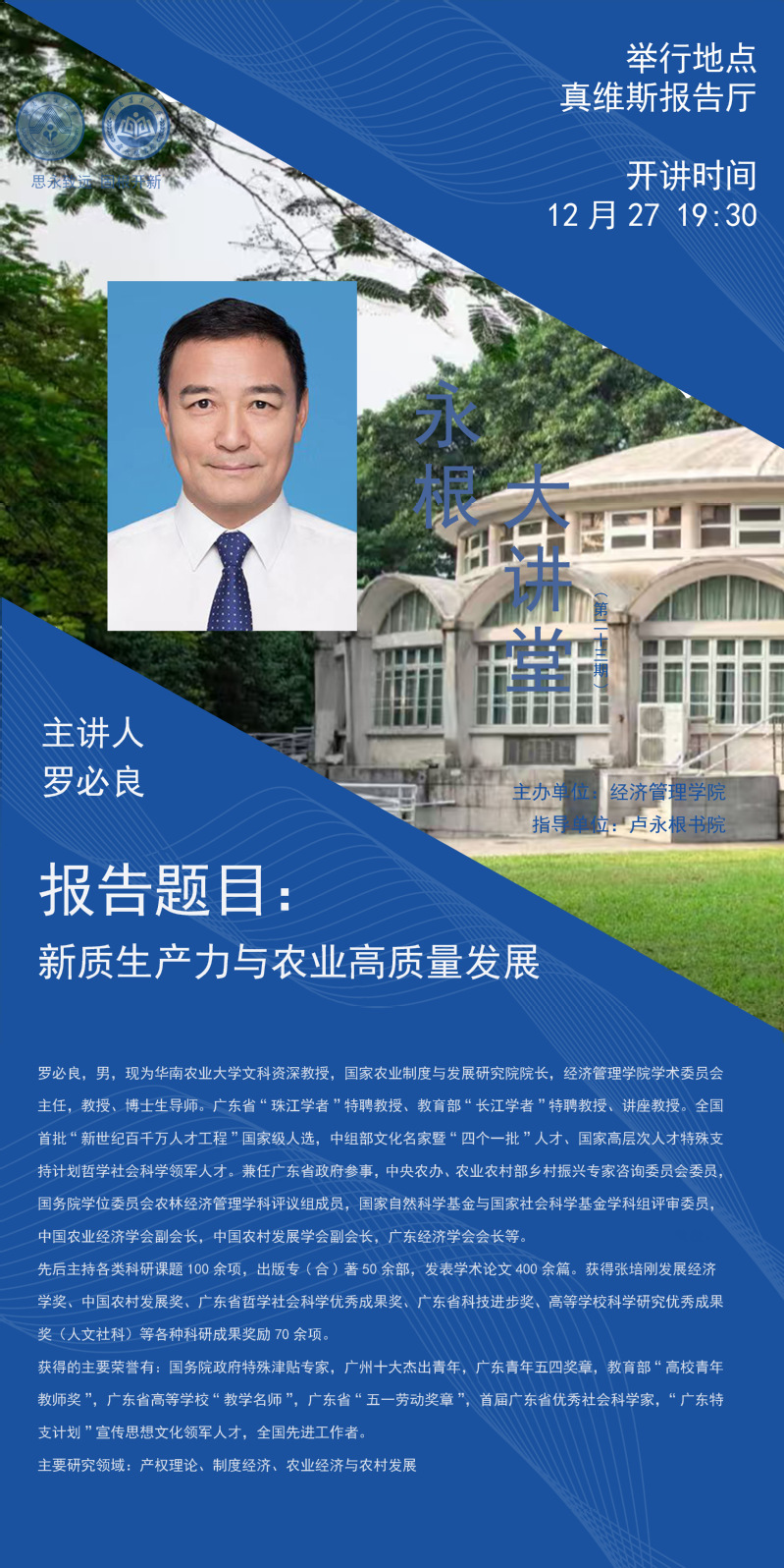 永根大讲堂第二十三期:新质生产力与农业高质量发展