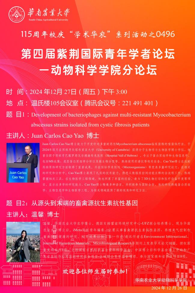115周年校庆“学术华农”系列活动之0496:第四届紫荆国际青年学者论坛 -动物科学学院分论坛