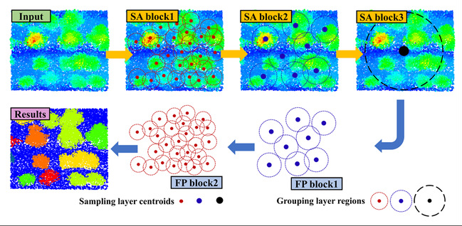 该研究使用无人机激光雷达平台对棉铃期大田棉花进行高通量数据采集。研究通过构建棉花大田点云数据集,使用三种深度神经网络进行模型训练,对比三种语义分割模型的分割效果,选择深度学习模型PointNet++对棉花点云进行语义分割,以实现棉花单株和地块点云的准确快速提取。最后利用6种单株棉花表型分析算法和5种块级棉花表型分析算法提取棉花株高、孔隙度和冠层体积等冠层结构信息。最终结果表明,本研究提出的方法可有效分割棉花,提取表型信息,为棉花生长监测、产量预测和科学管理提供技术支持。